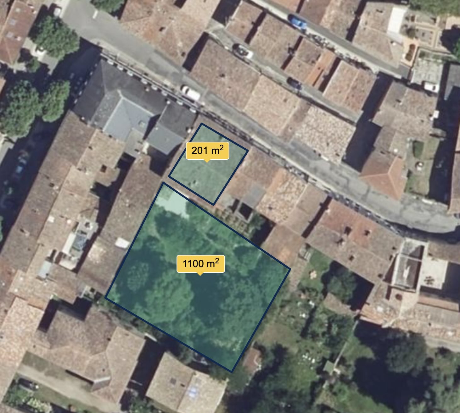 ✦ 1350m2 garden with trees could easily add an orangerie backing onto half the building for more common space