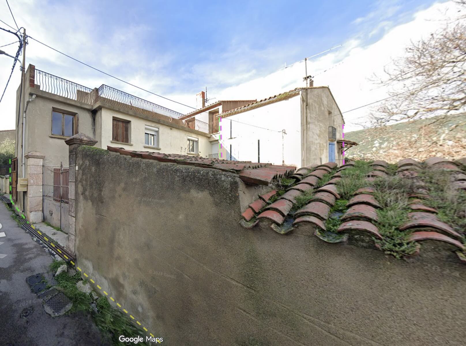 ✦ a plot apparently unused to the north with 150m2 of garage (40m2 of asbestos-cement roof) and 100m2 of garden
