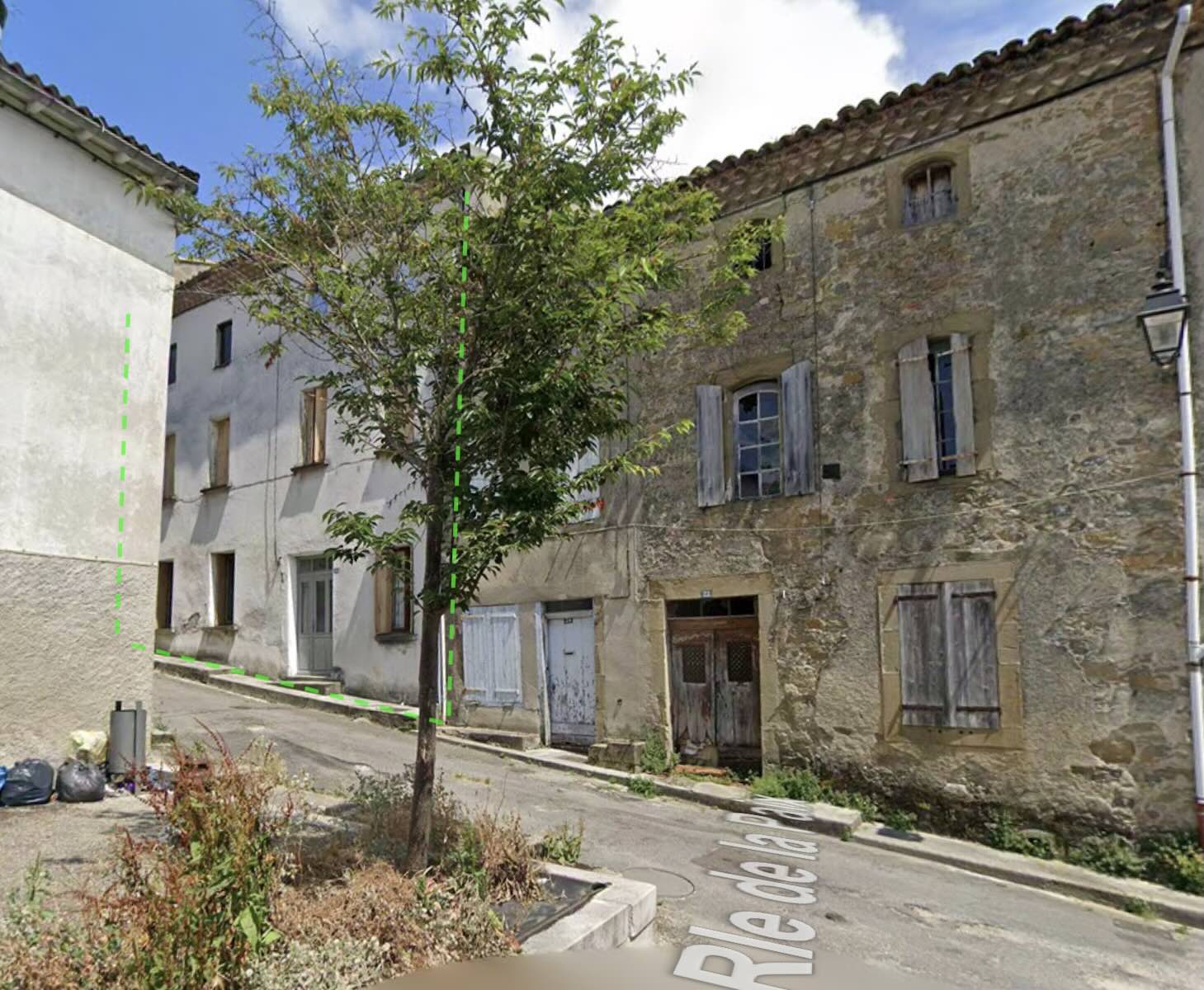 next to 2 abandoned/collapsing buildings, one 40m2 *3, another 80m2 *3 thus making possible to expand very cheaply!