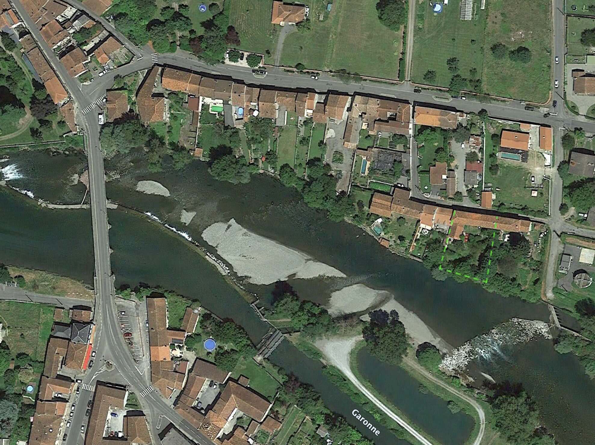 south facing with 700m2 garden to the river edge quite a few metres below a small retaining wall (bottom can flood but no risk, see photo)
